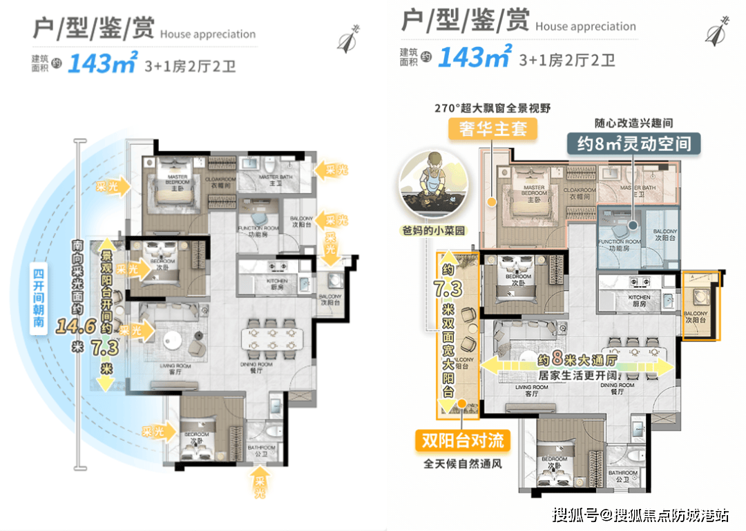 项目容积率仅3.0,绿化率高达36.4%,楼间距最大120米,确保每户日均光照6小时以上。在售户型包括98㎡全南向三房(得房率85%)、125㎡四房(LDK一体化设计)、143㎡五房(专梯入户,双套房设计),均采用2梯4户设计,实现户户南向。装修标准为精装修,配备大金中央空调、汉斯格雅卫浴、博世厨电等国际一线品牌。