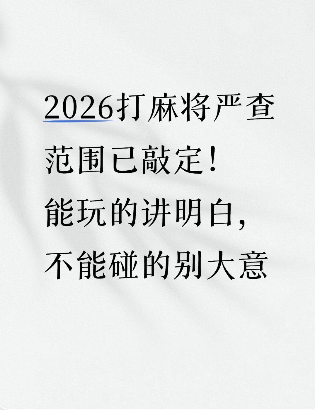 2026年的麻将整治,从来不是“一刀切”的禁令,而是划清红线、保护合规、打击违法的理性治理。对普通人来说,不用恐慌,不用焦虑,只要守住“亲友、小额、不抽水、不扰民”的底线,闲暇时和家人朋友打几圈麻将,依然是安全、合法、舒心的娱乐方式。