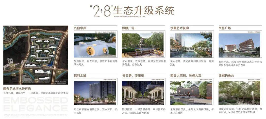 项目外联滨河景观带,内造约1.8万㎡奢华园林,打造流云飞瀑、艺术森屿、鸣和瑞照、琉璃光院、花影和颂、和风悦茗、若水如松、花溪雅韵八大境,营造“出则繁华,入则闲适”的都市秘境。