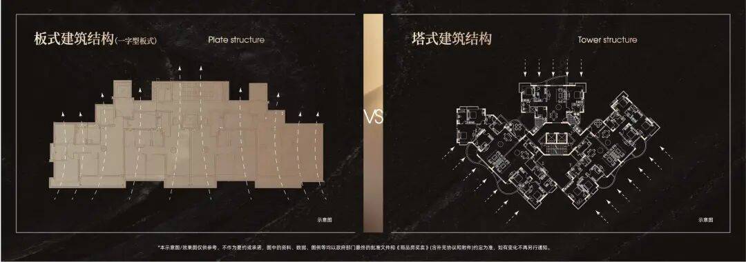 √板楼:户型一字排开,户户南北对流,自然通风效率高,保证室内空气常新,实现真正的南北通透,全明采光,且能有效避免视线交叉,保障私密性。