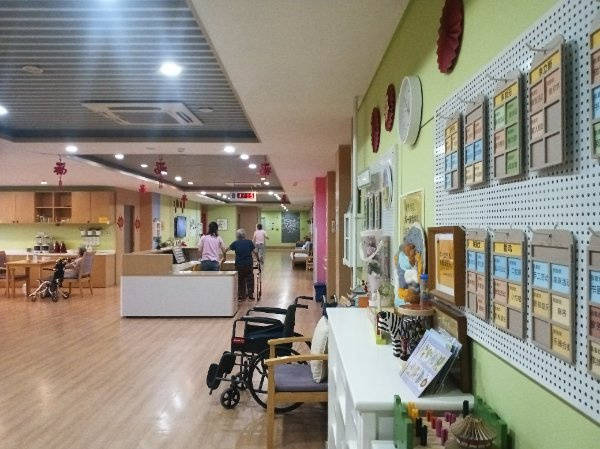 设施特色极为鲜明,公寓与商业综合体世界之花和石榴公园一墙之隔,既方便长者日常购物、休闲娱乐,又能近距离拥抱自然生态,空气清新、环境宜人。公寓总面积达五千余平米,采用适老化居家环境设施打造,既规划了充足的公共活动空间,满足长者社交、娱乐需求,又保障了老人居住的生活隐私,兼顾集体生活与个人空间。按照星级酒店标准规划房型,涵盖单人间、双人间、家庭套间、康复VIP间、三人间及多人间,其中家庭间可专门接收两老一残家庭,既能提供相对独立的居住空间,又能让智残子女和年迈父母一同享受专业照护,解决特殊家庭的养老难题。
