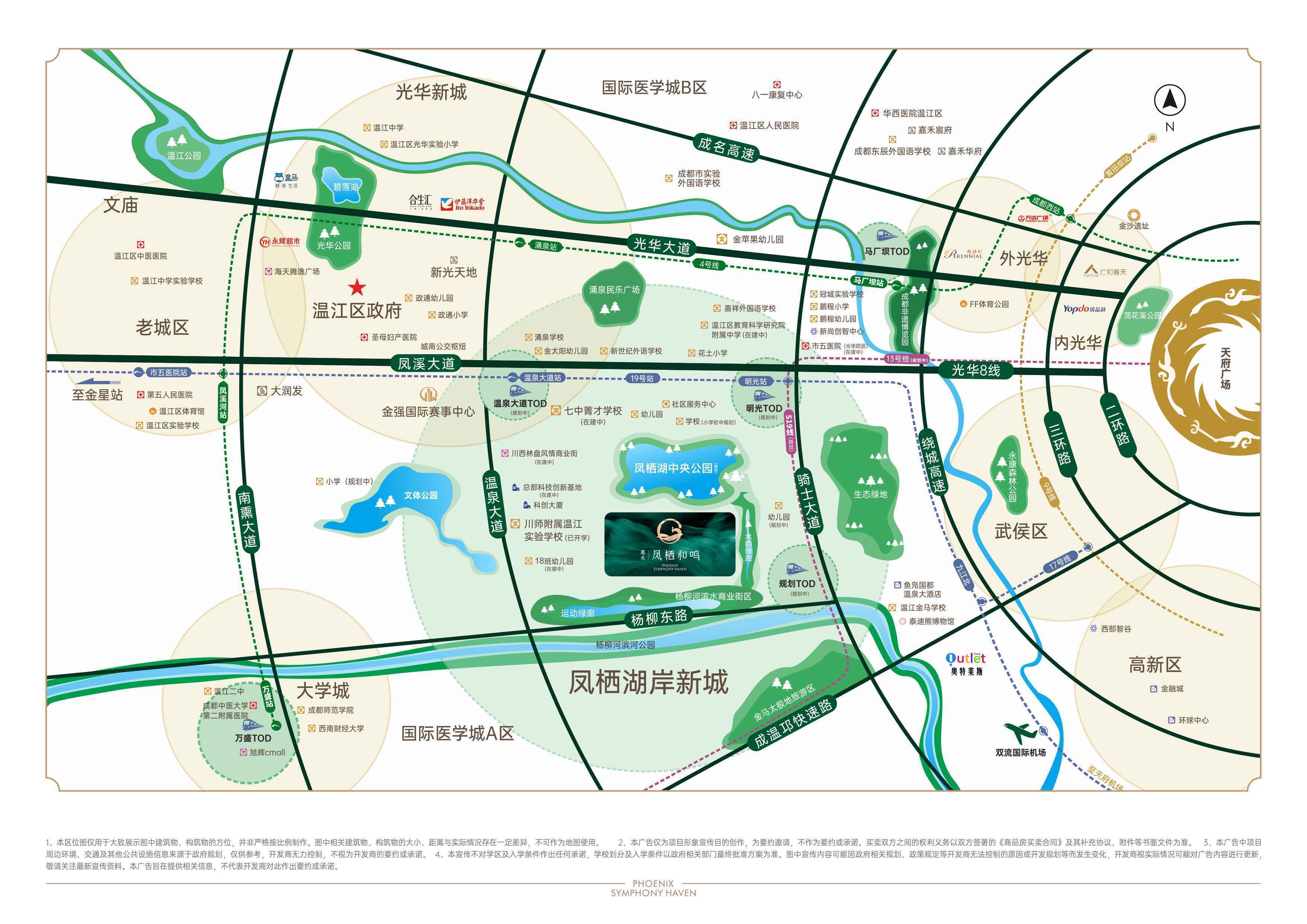 双高三轨两快交通路网,咫尺19号线号线分钟接驳天府机场的效率革命;成都绕城高速、成名高速约15分钟接驳三环,光华8线、光华大道两大快速路串联温教育:名校环伺 全龄优教