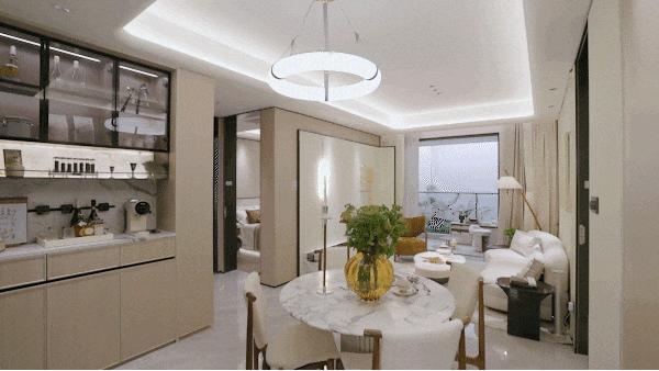 ,极大地加强了室内的通透性,大幅增加了采光面。而业主也可以根据入住后自身需要,选择是否将南向双阳台接通,形成一个“跑道级”阳台,家政空间、阳光房,一键享有。事实上,如果大家去实地看过样板间,就能感受到金茂棠前在户型尺度上,和其他同面积段户型的不同: